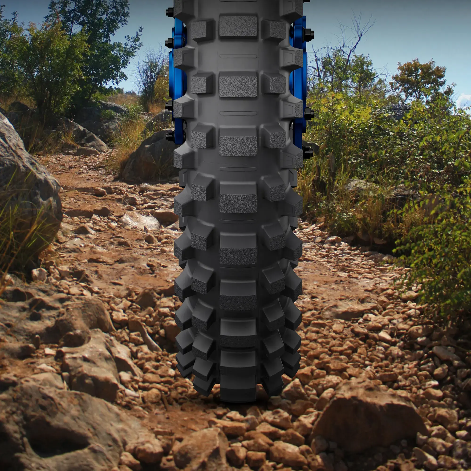 Adaptiv design ger 7 % bättre grepp och kontroll på mjuk till mellanhård terräng, när däcket är nytt.